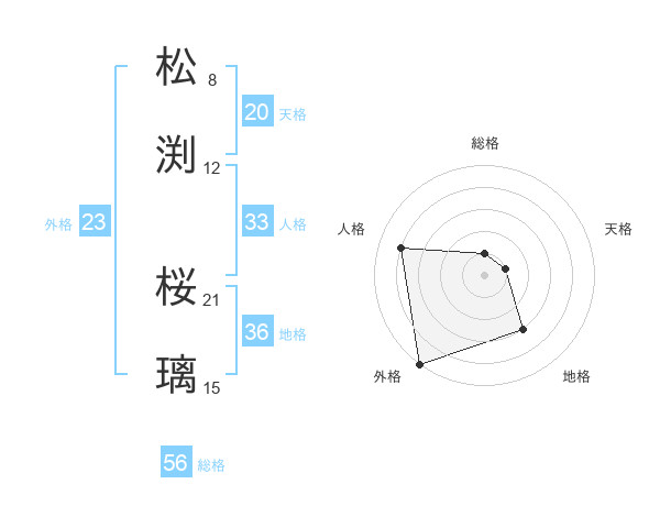 松渕 桜璃さんを姓名の画数から五運を鑑定