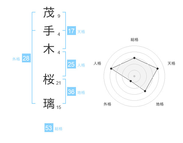 茂手木 桜璃さんを姓名の画数から五運を鑑定