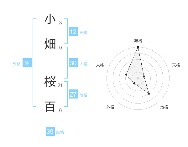小畑 桜百さんの総格は39画の5点!