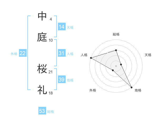 中庭 桜礼さんの総格は53画の3点!