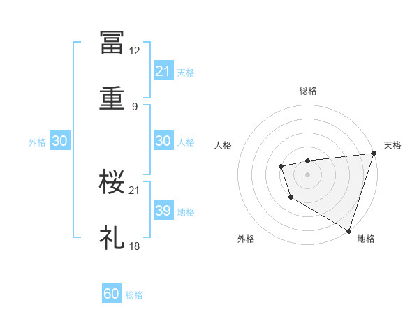 冨重 桜礼さんの総格は60画の1点!