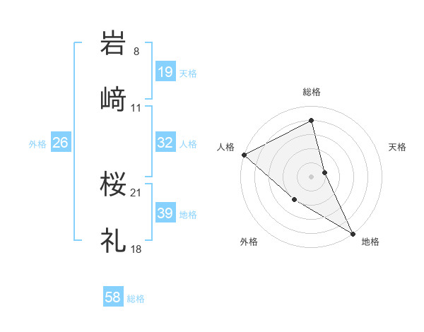 岩﨑 桜礼さんの総格は58画の4点!