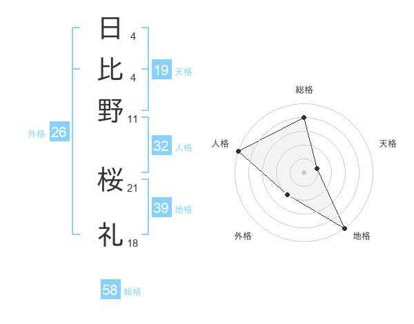 日比野 桜礼さんを姓名の画数から五運を鑑定