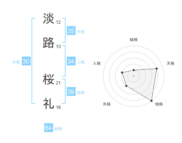 淡路 桜礼さんを姓名の画数から五運を鑑定