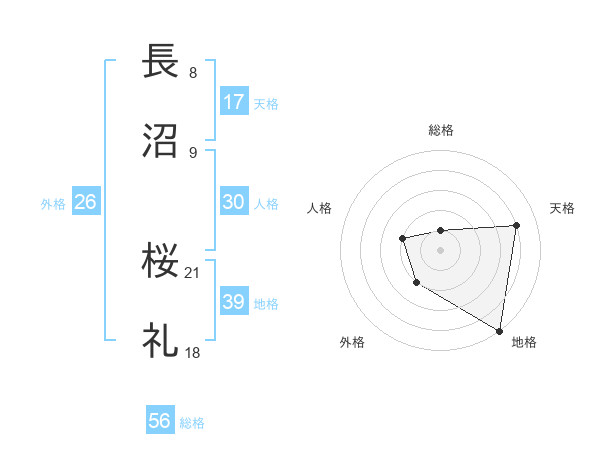 長沼 桜礼さんの総格は56画の1点!