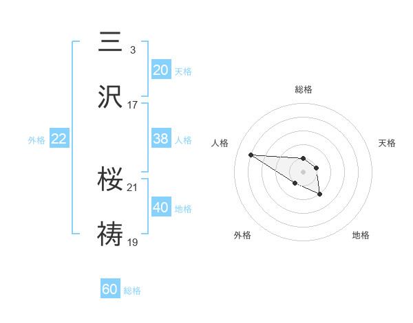 三沢 桜祷さんの外格は22画の1点!