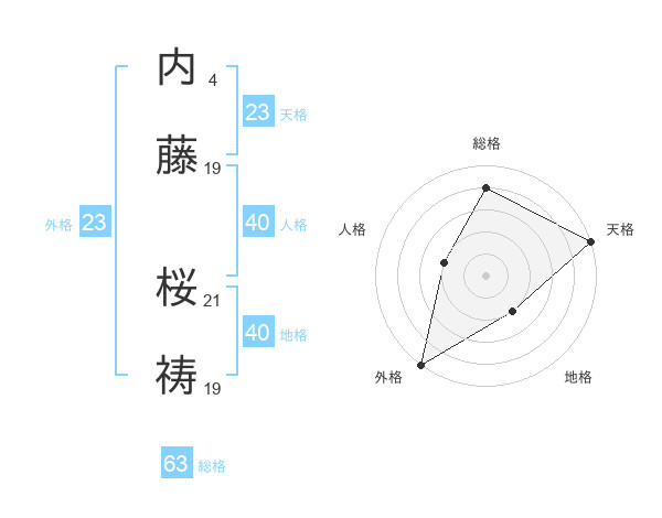 内藤 桜祷さんを姓名の画数から五運を鑑定