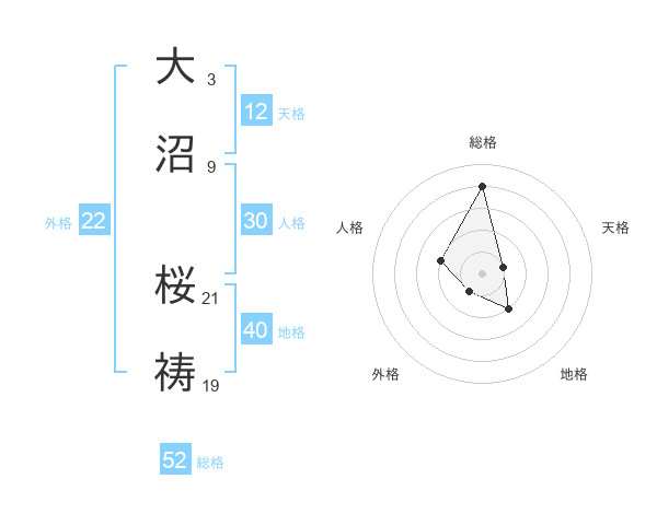 大沼 桜祷さんの外格は22画の1点!