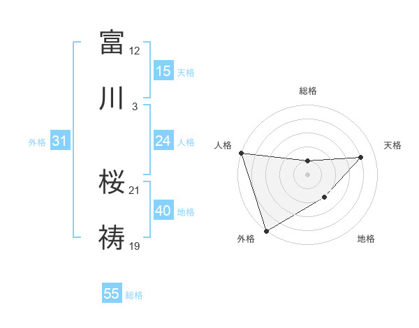 富川 桜祷さんを姓名の画数から五運を鑑定