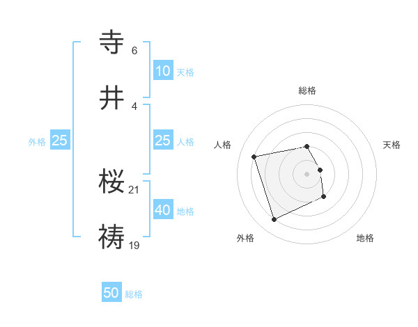 寺井 桜祷さんの総格は50画の2点!