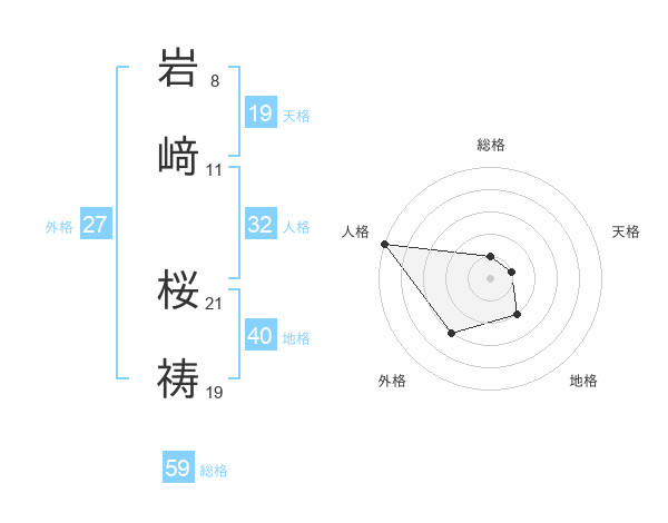 岩﨑 桜祷さんの総格は59画の1点!