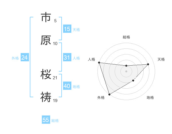 市原 桜祷さんを姓名の画数から五運を鑑定