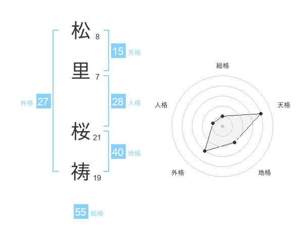 松里 桜祷さんの総格は55画の1点!