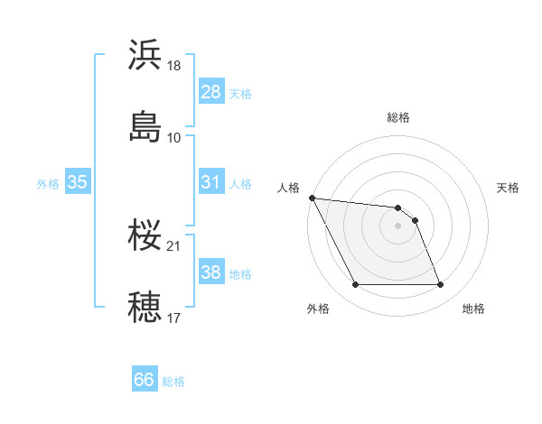 浜島 桜穂さんを姓名の画数から五運を鑑定