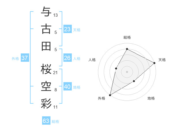 与古田 桜空彩さんの外格は37画の5点!
