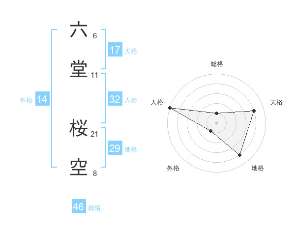六堂 桜空さんを姓名の画数から五運を鑑定