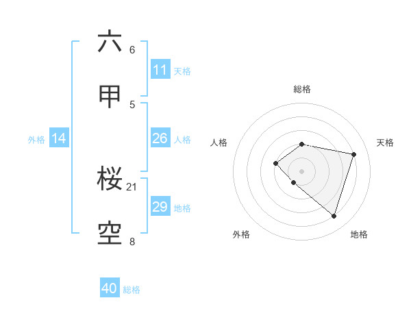 六甲 桜空さんの総格は40画の2点!