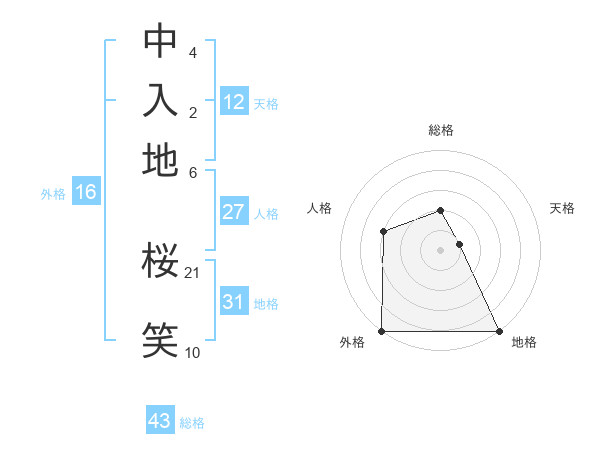 中入地 桜笑さんの総格は43画の2点!