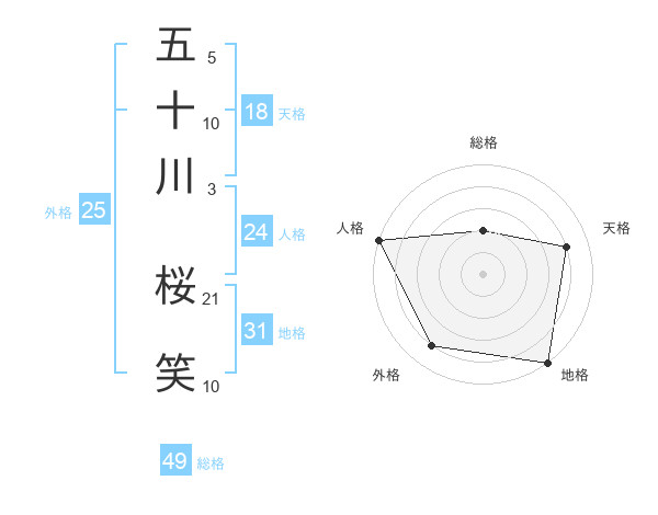 五十川 桜笑さんの総格は49画の2点!