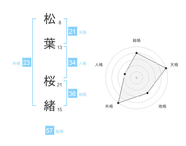 松葉 桜緒さんを姓名の画数から五運を鑑定