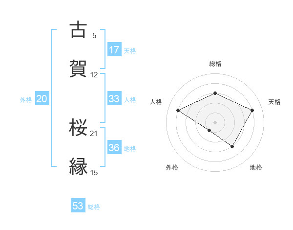 古賀 桜縁さんの総格は53画の3点!