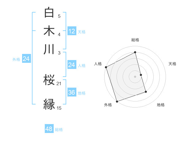 白木川 桜縁さんの総格は48画の4点!