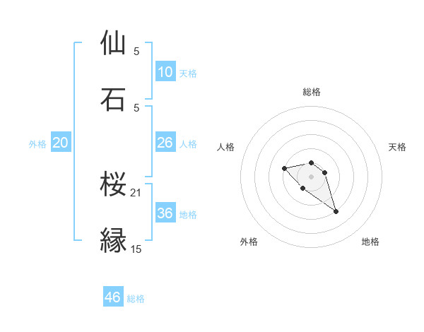 仙石 桜縁さんの総格は46画の1点!