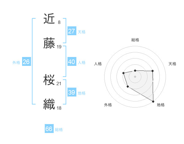 近藤 桜織さんを姓名の画数から五運を鑑定