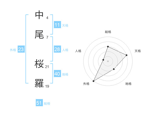 中尾 桜羅さんを姓名の画数から五運を鑑定