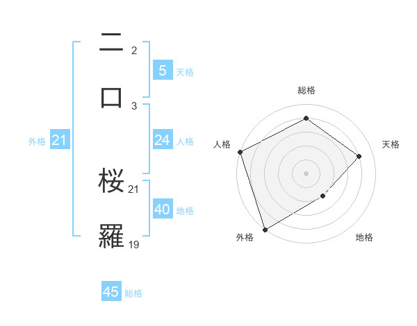 二口 桜羅さんの外格は21画の5点!