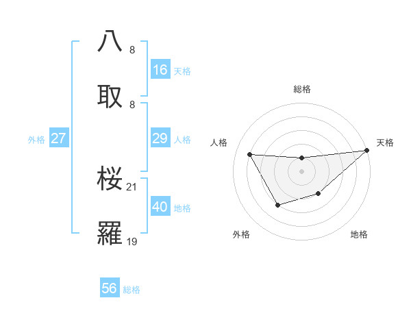 八取 桜羅さんの天格は16画の5点!