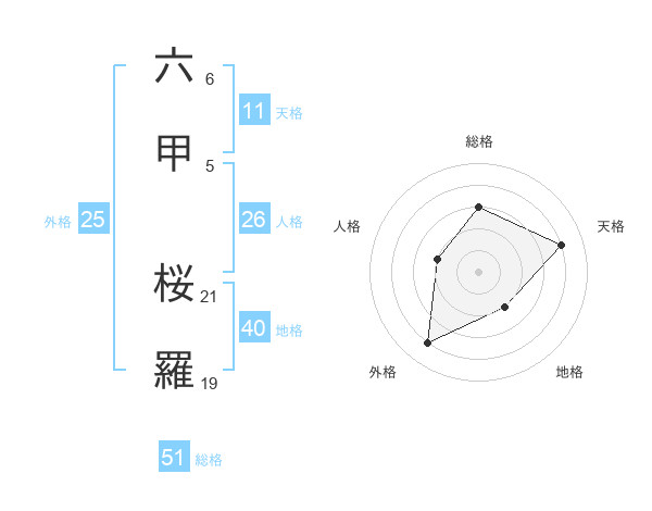 六甲 桜羅さんを姓名の画数から五運を鑑定