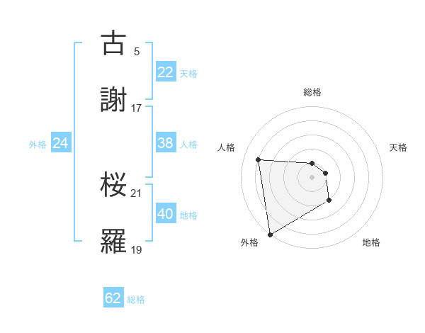 古謝 桜羅さんの外格は24画の5点!