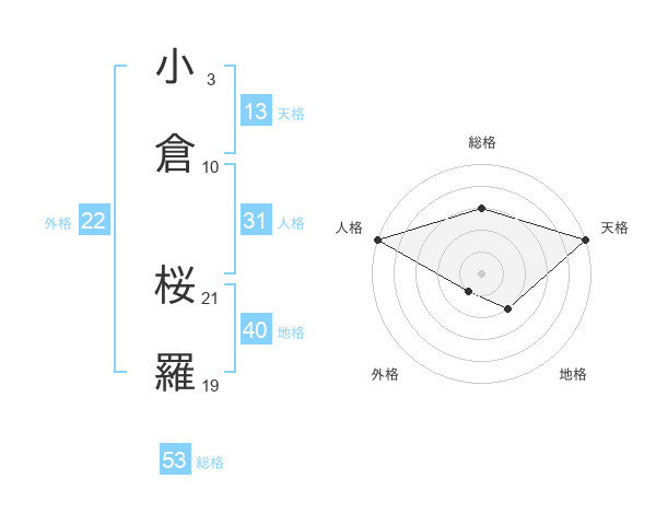 小倉 桜羅さんの総格は53画の3点!