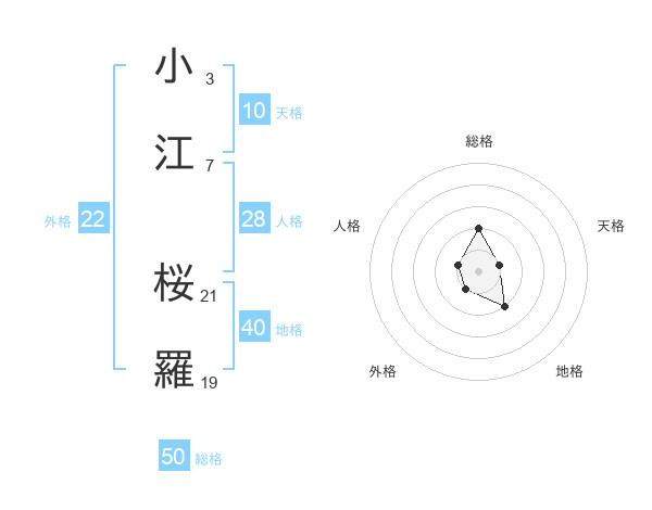 小江 桜羅さんを姓名の画数から五運を鑑定