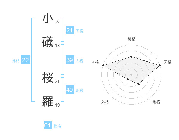 小礒 桜羅さんを姓名の画数から五運を鑑定