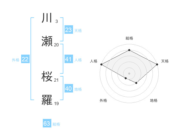 川瀬 桜羅さんの外格は22画の1点!