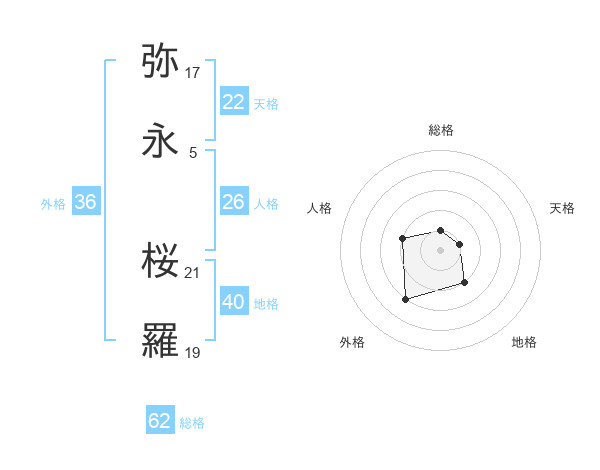 弥永 桜羅さんの総格は62画の1点!
