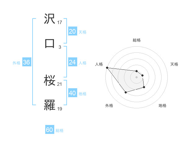 沢口 桜羅さんを姓名の画数から五運を鑑定