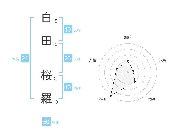 白田 桜羅さんを姓名の画数から五運を鑑定