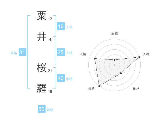 粟井 桜羅さんを姓名の画数から五運を鑑定