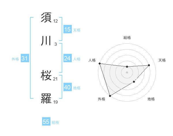 須川 桜羅さんを姓名の画数から五運を鑑定