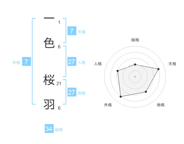 一色 桜羽さんの地格は27画の3点!
