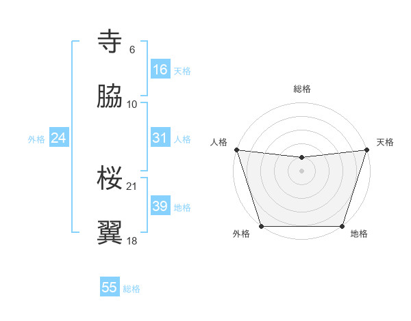 寺脇 桜翼さんの総格は55画の1点!