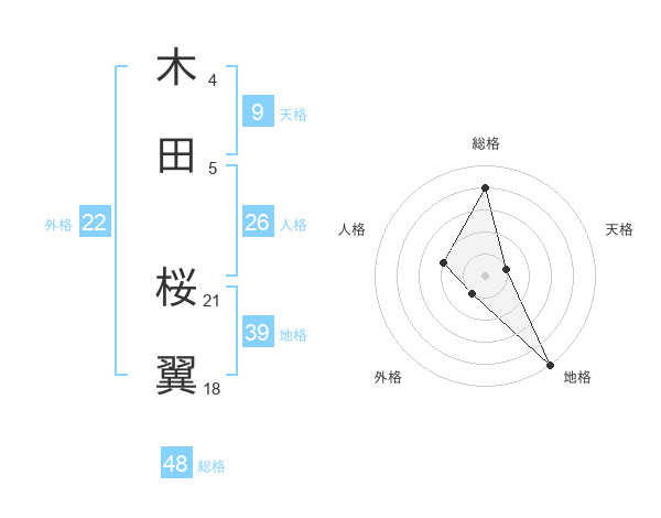木田 桜翼さんの総格は48画の4点!