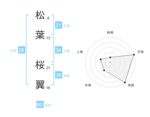 松葉 桜翼さんを姓名の画数から五運を鑑定