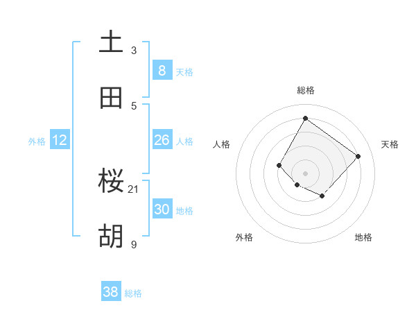土田 桜胡さんを姓名の画数から五運を鑑定