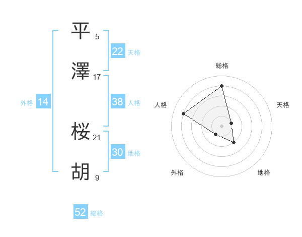 平澤 桜胡さんの総格は52画の4点!
