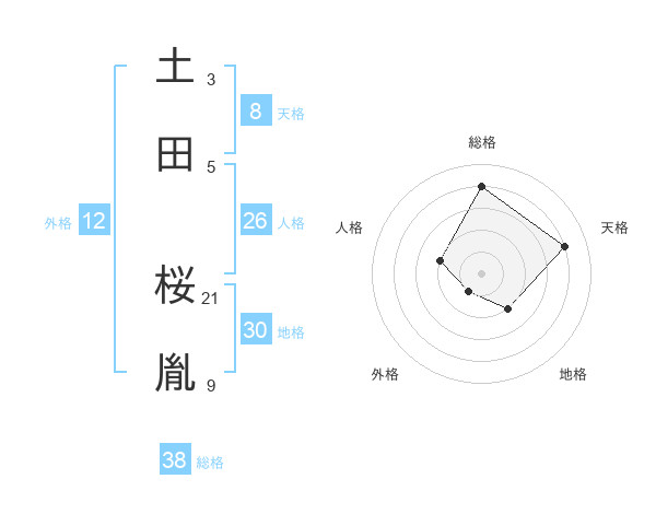 土田 桜胤さんの総格は38画の4点!