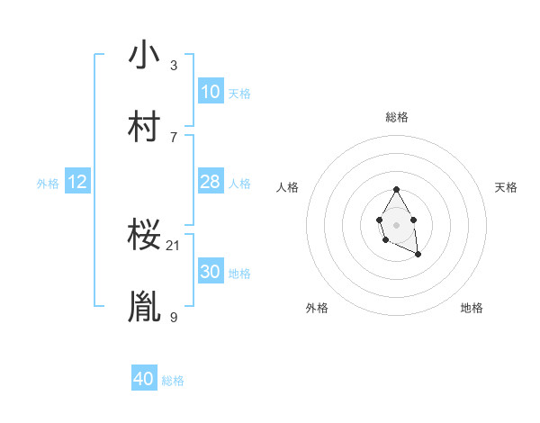小村 桜胤さんの総格は40画の2点!